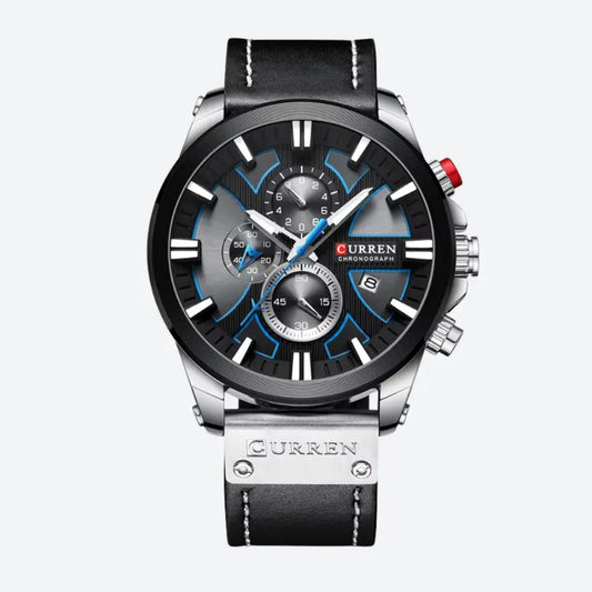 Montre Chronographe Homme à Quartz, Boîtier Large Bracelet Cuir